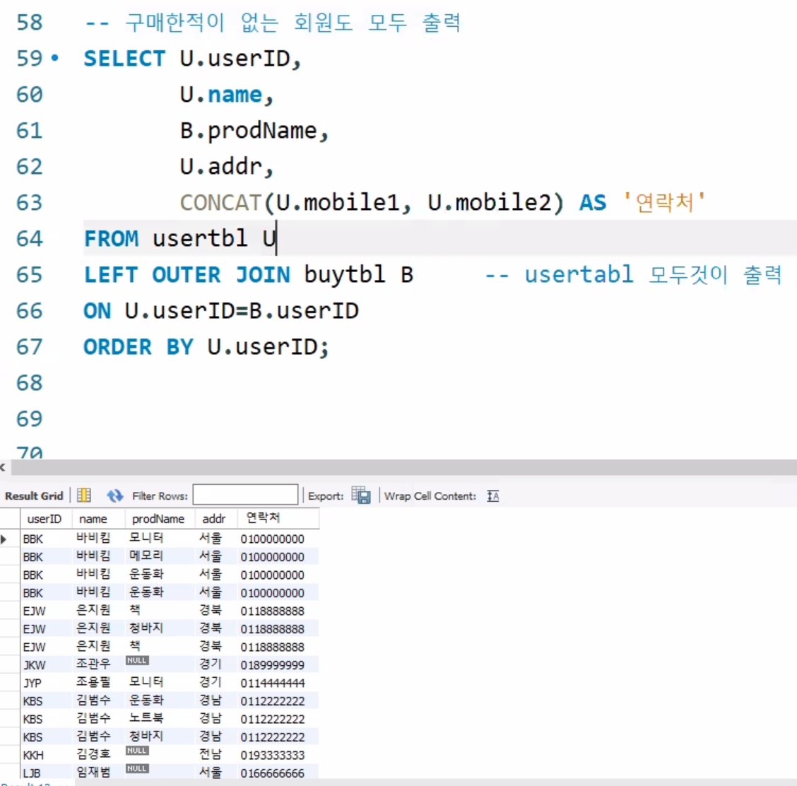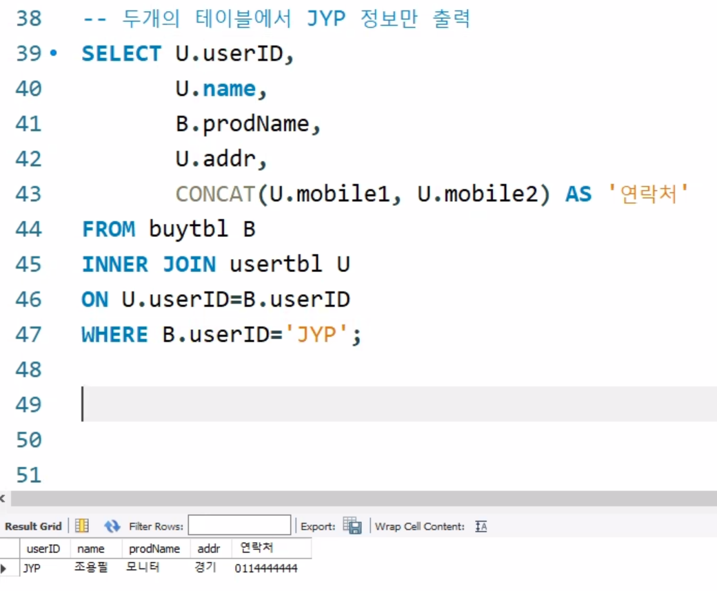 WHERE U.userID='JYP'; 도 가능함