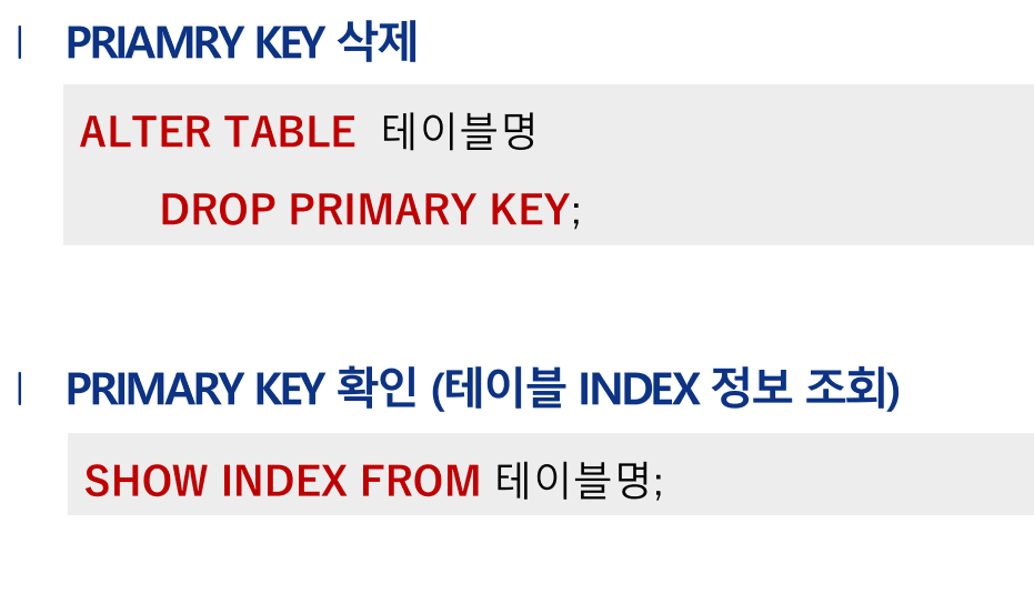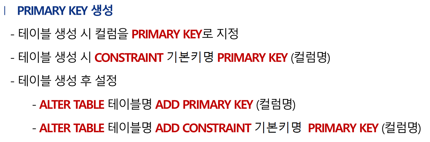 - PRIMARY KEY : 기본 키