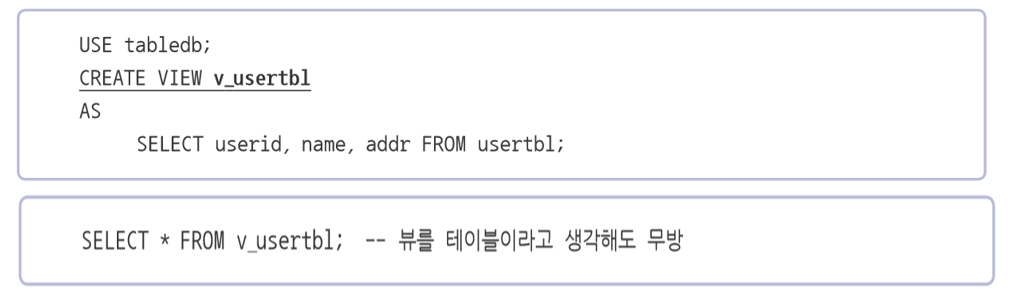 - TABLE로 부터 생성한 개체로 SELECT를 통한 조회한 결과를 테이블 형태로 볼 수 있도록 생성한 객체