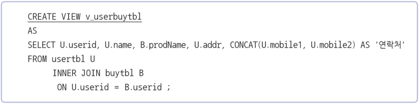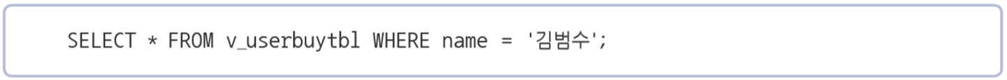 - 하나 이상의 기본 테이블로부터 유도된 가상 테이블