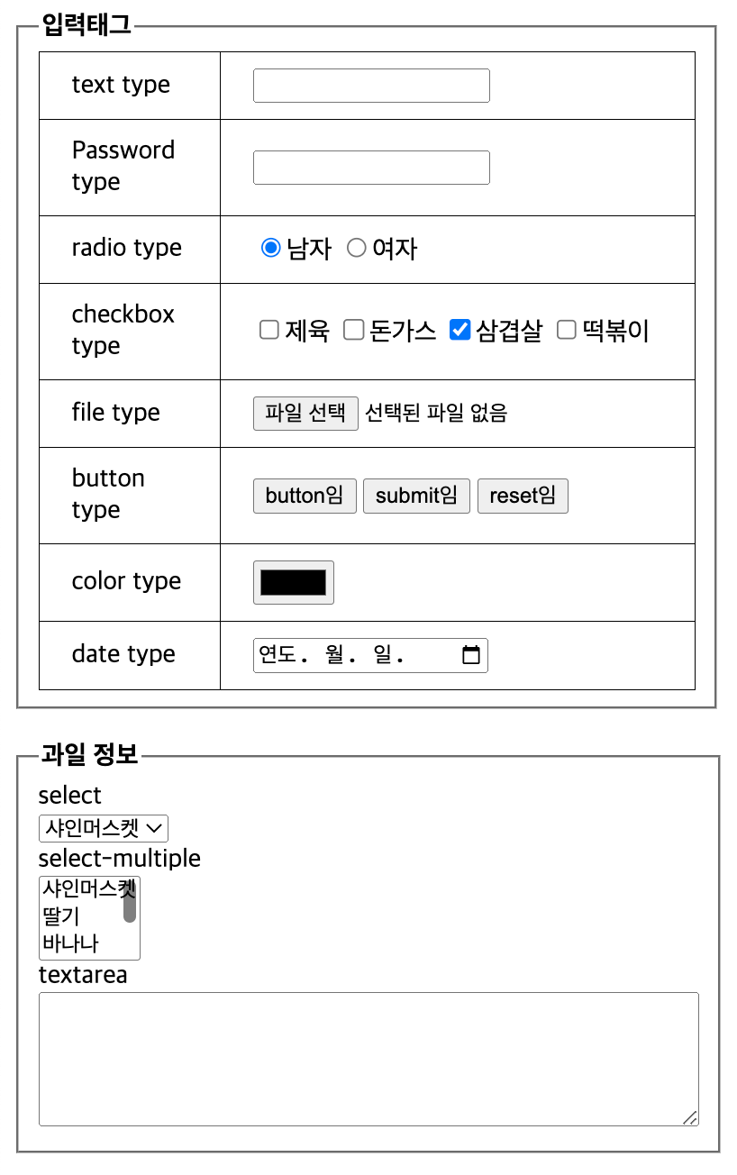<fieldset style="width: 405px;"><legend><b>입력태그</b></legend>