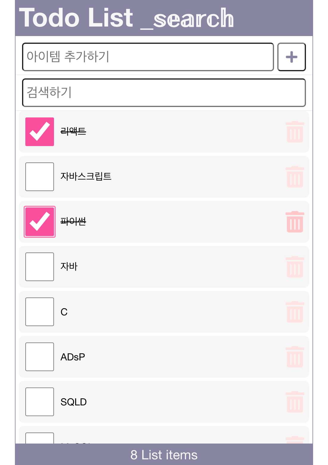 | [React/리액트] 검색기능을 추가한 Todo List 만들기 | SearchItem, App.js (0) | 2023.08.21 |