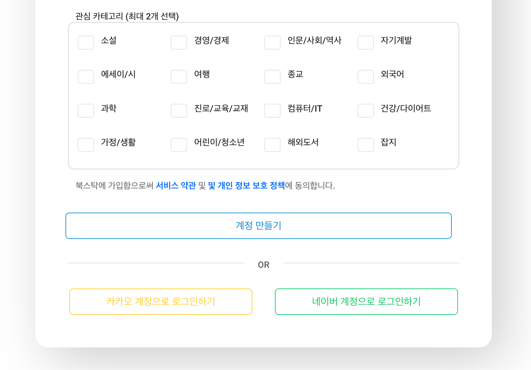 관심(선호) 카테고리 입력받기
