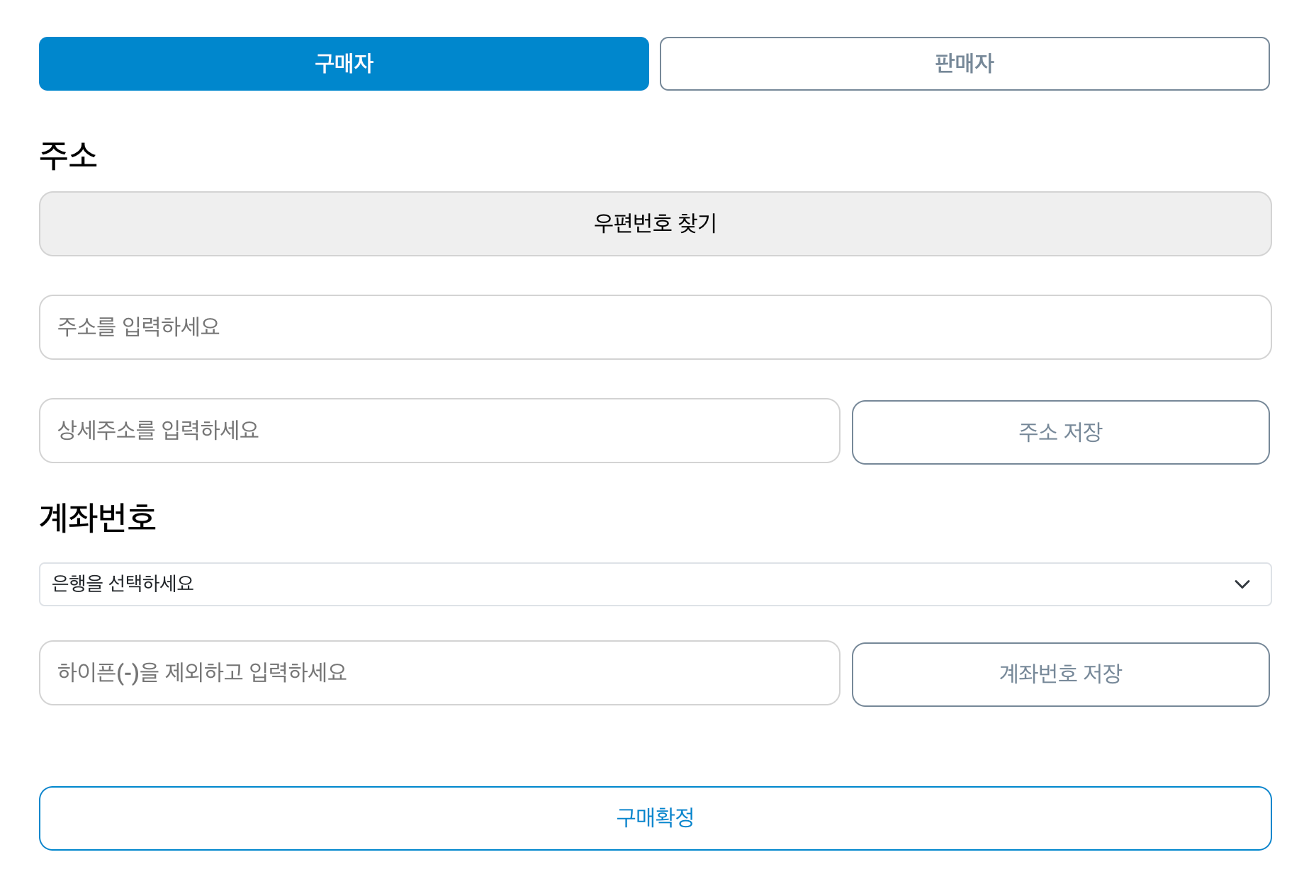 수많은 컴포넌트로 이루어질 예정이라 나는 일단 거레중 -> 구매자, 판매자 정보입력부분을 구현하기로했다.