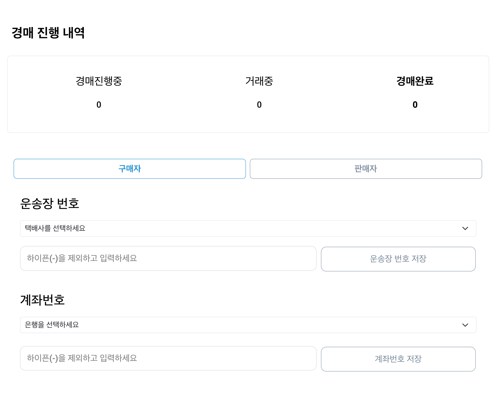 판매자에는 운송장 번호입력란과