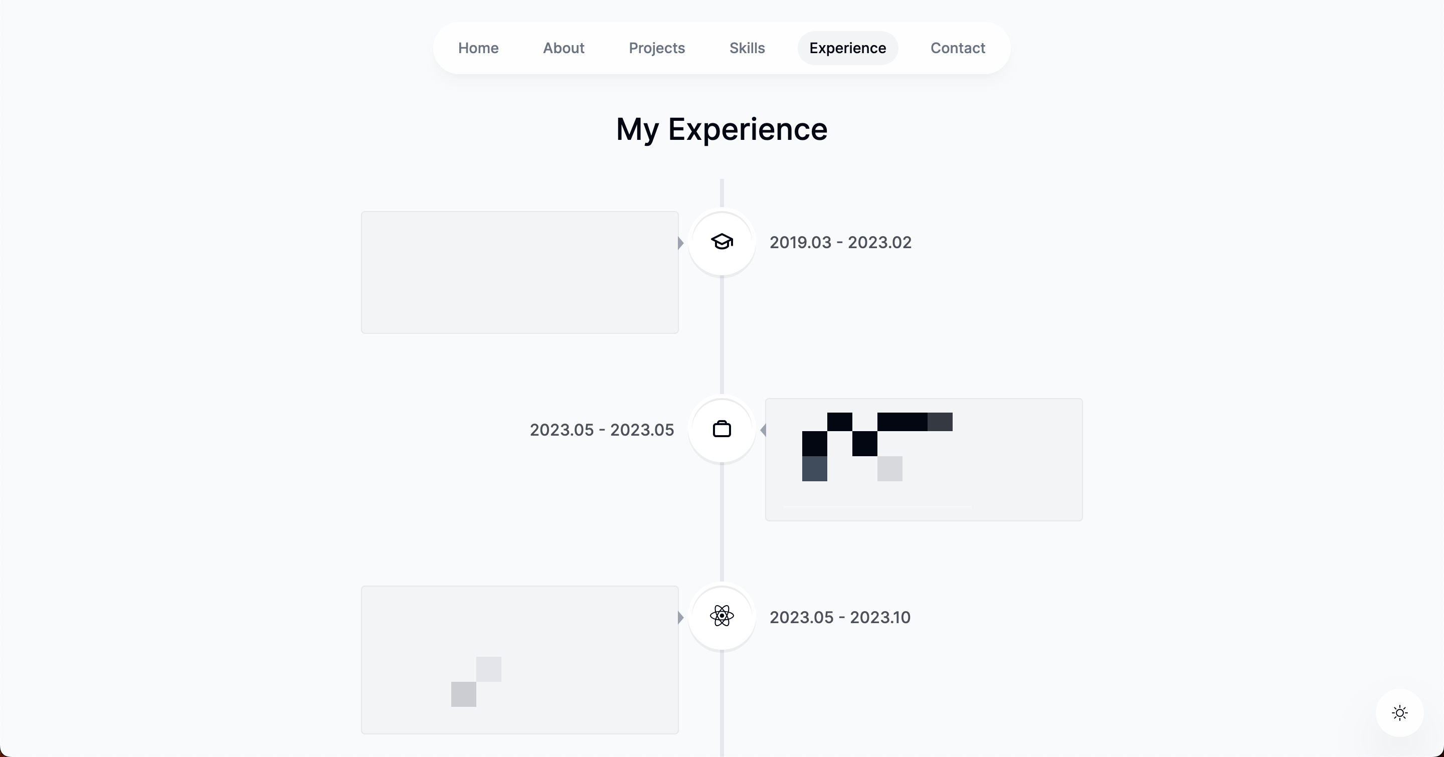 각 VerticalTimelineElement는 경험의 날짜, 아이콘, 제목, 위치 및 설명을 포함한 컨텐츠를 가지고 있다.