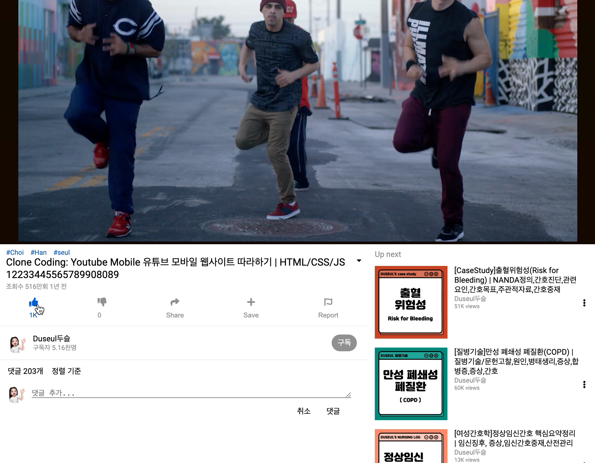 Up next 부분에는 네이버블로그에서