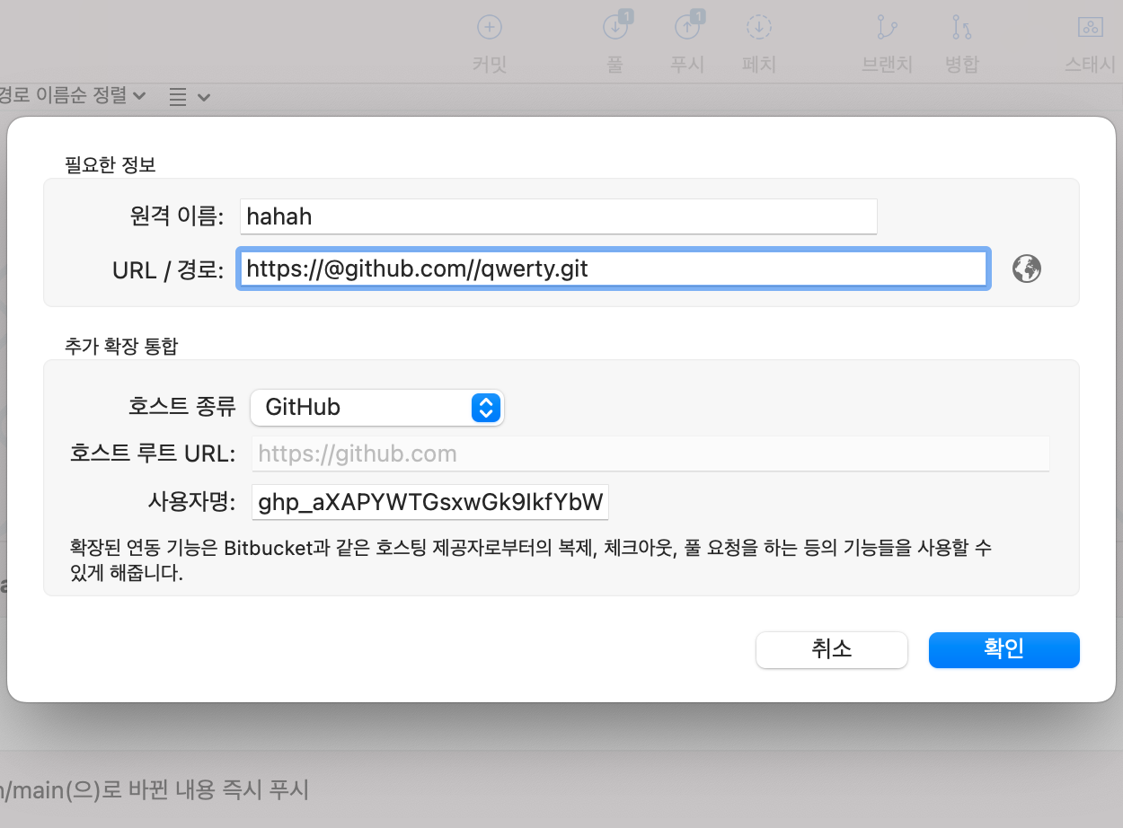 중요>>> https://토큰주소@레퍼지토리주소.git