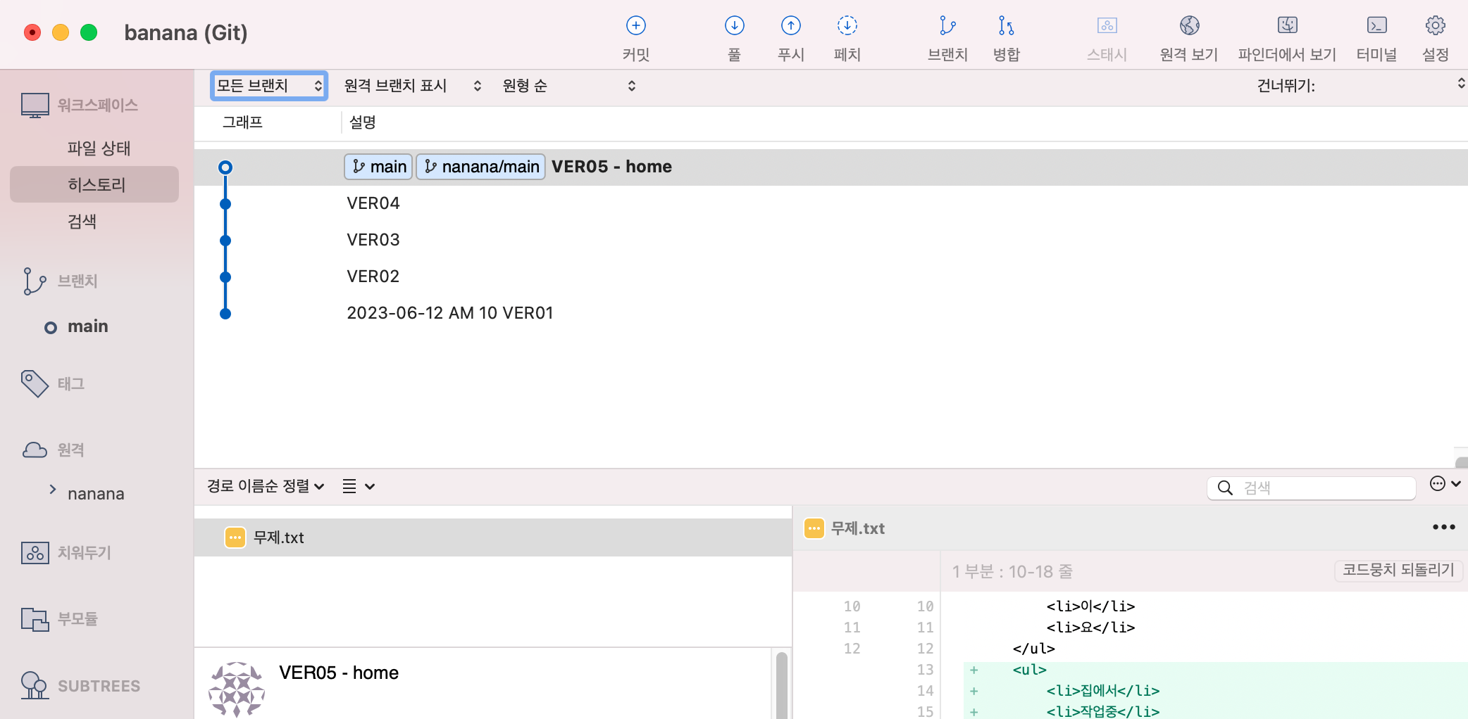 5. 마지막으로 파일의 상태는 히스토리에서 확인할 수 있다.